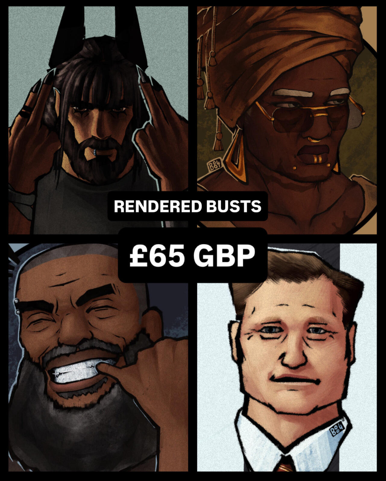 Commercial work is subjected to up to 8x the total order cost. Rights and permissions will be negotiated pending a £150 non-refundable deposit